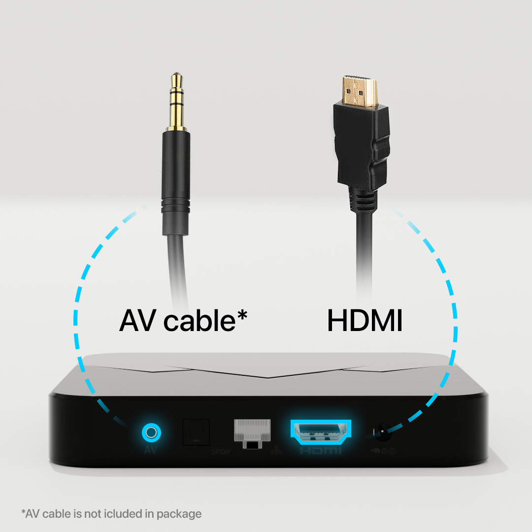 TV Connection - Use an HDMI or AV cable to connect the ONYX STB to your TV. HDMI is preferred for better video quality. If your TV doesn’t have an HDMI port, use the AV cable.