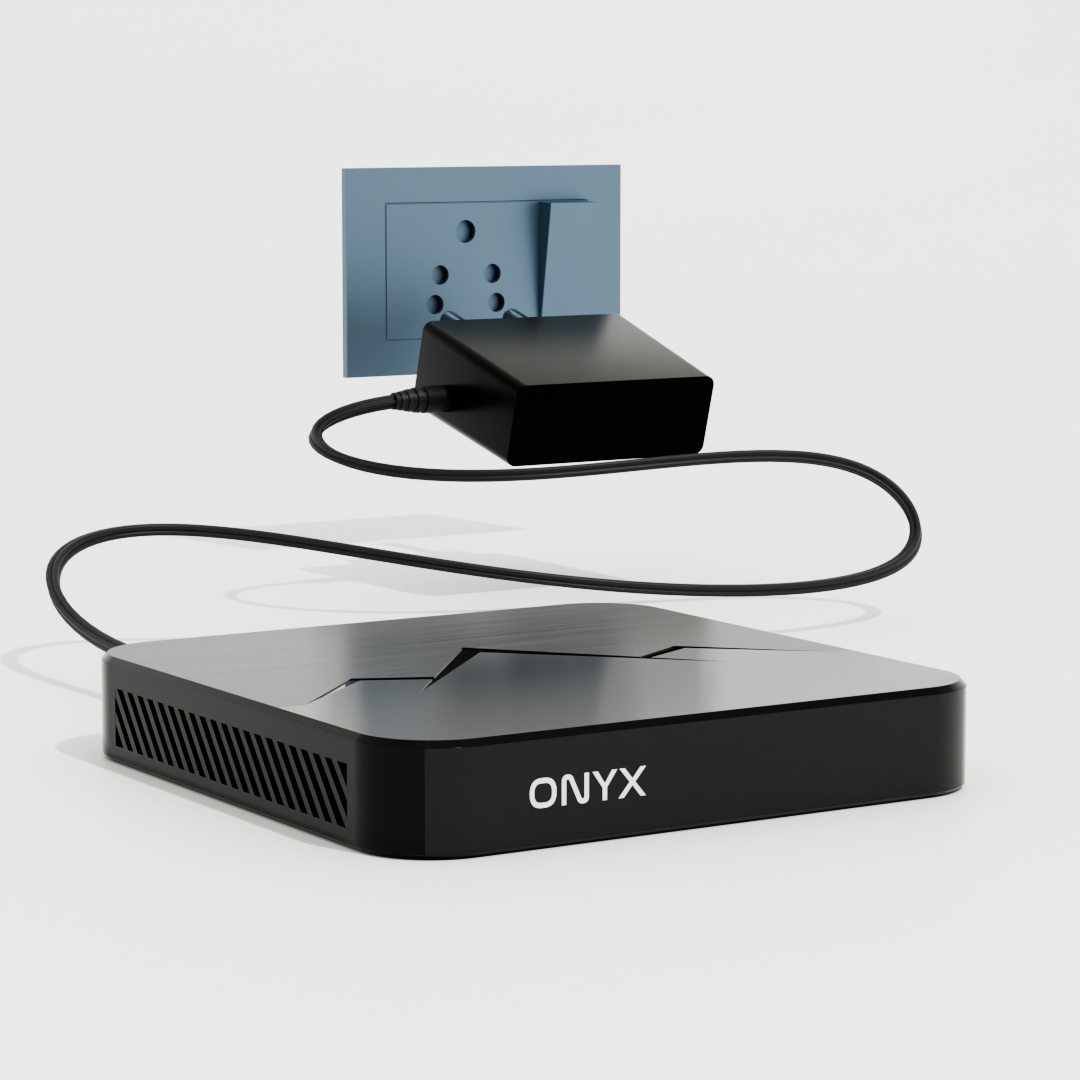 Power Connection - Plug the power adapter into the ONYX STB, then connect it to a power outlet to turn on the device.