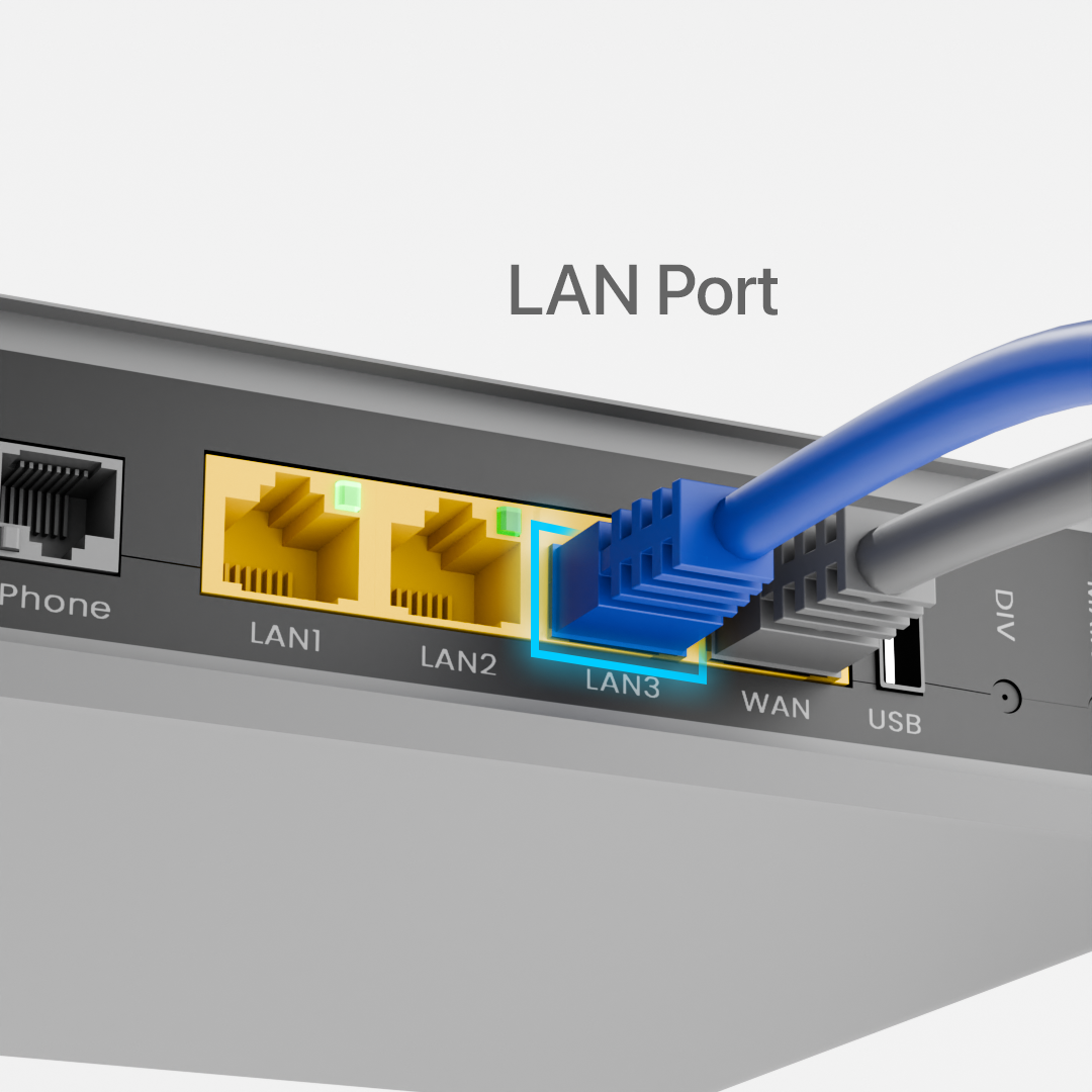 Connect to Modem/Router - Plug the other end of the Ethernet cable into an available LAN port on your modem or router.
