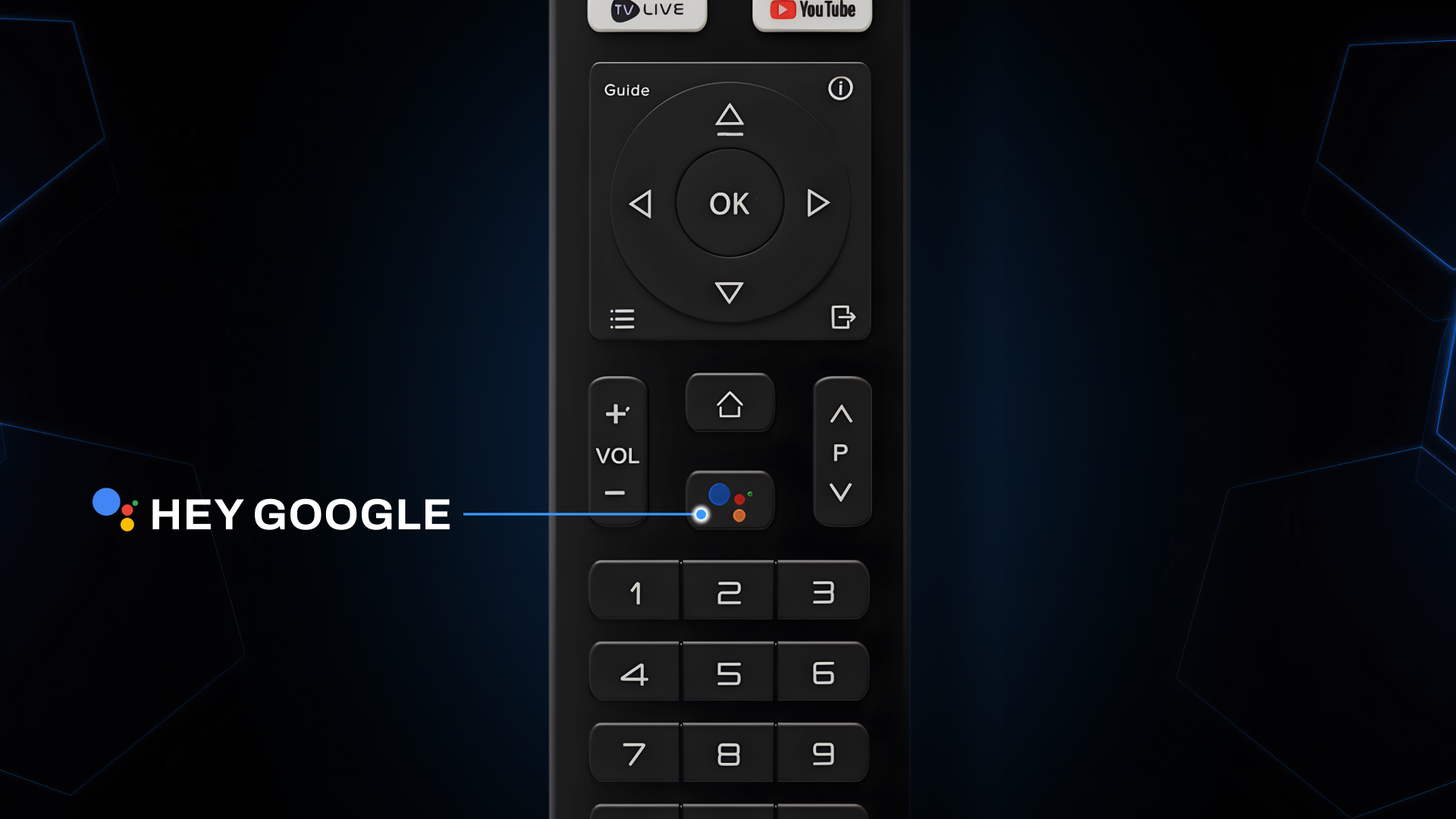 Press and hold the dedicated Hey Google / Voice Assistant button on your remote.