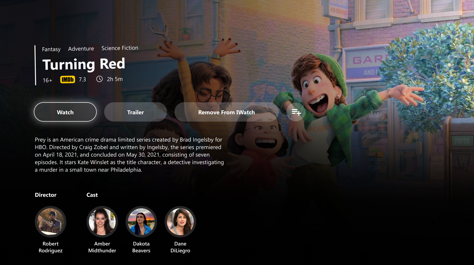 After selecting a movie, Users have three options to either, Play a full movie, Play a Trailer or Add a Movie to their iWatch section, as seen in the image below.